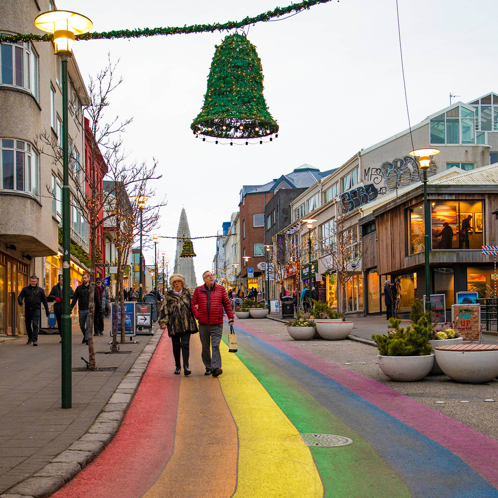 Klapparstígur was earlier temporarily painted for this festival. However, Skólavörðustígur, a street in Reykjavik city center, was permanently colored with hues of the rainbow, decided unanimously by the city council in June 2019. Hallgrímskirkja church is located at the top of this street.
